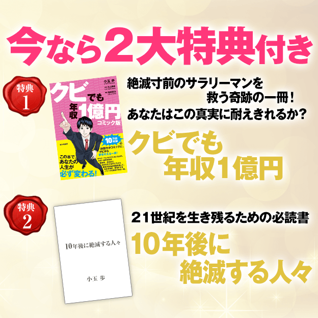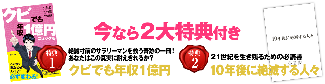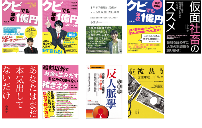 この経験を書籍として出版した『クビでも年収1億円』(KADOKAWA)は処女作にして10万部という異例のヒット作となり、コミック版・実践編とシリーズ累計15万部を記録する。